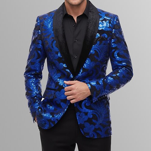 Per uomo Giacca blazer Tuxedo Collo a scialle Festa Lusso Jacquard Blazer Blu Kaki Vestibilità standard Monopetto Un Bottone