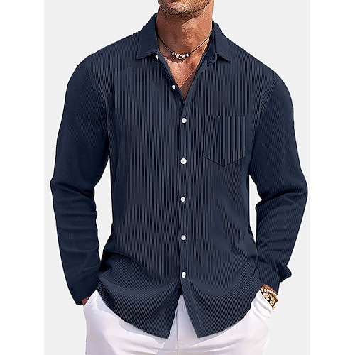 Per uomo Camicia Camicia casual Camicia di Velluto a Coste Camicia con Bottoni Blu Nero Bianco Blu marino Marrone Manica Lunga Semplice Collo ripiegato Casuale All'aperto Caldo Abbigliamento Vacanza