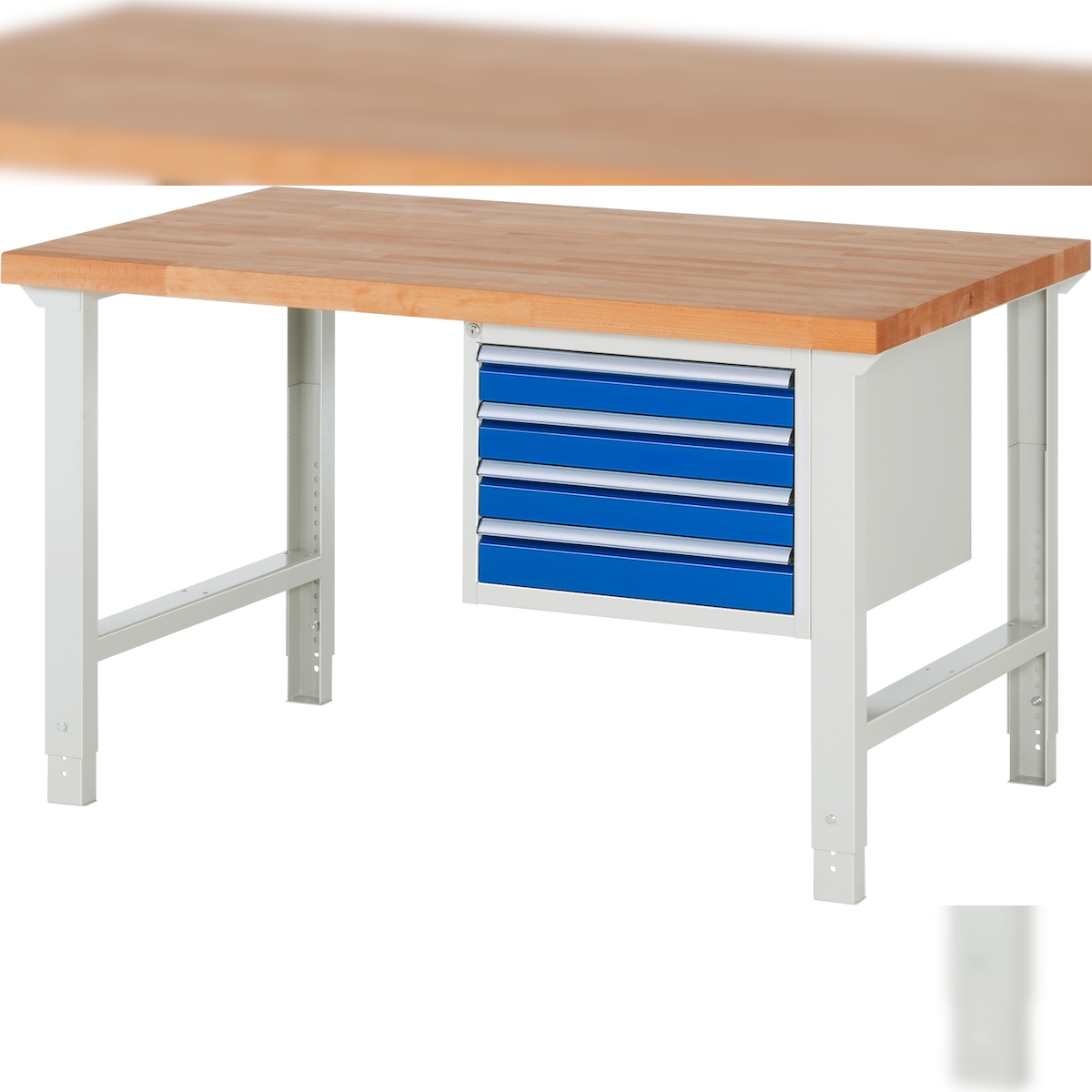 PROREGAL Werkbank Serie 7000 - Modell 7133 | HxBxT 79-114x150x90cm | 4x Schublade | Schubladenmaße 4x90mm | Lichtgrau | Arbeitstisch Werktisch