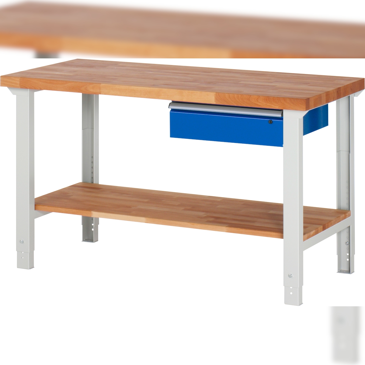 PROREGAL Werkbank Serie 7000 - Modell 7001 | HxBxT 79-114x150x70cm | 1x Schublade + Ablageboden | Schubladenmaße 1x150mm