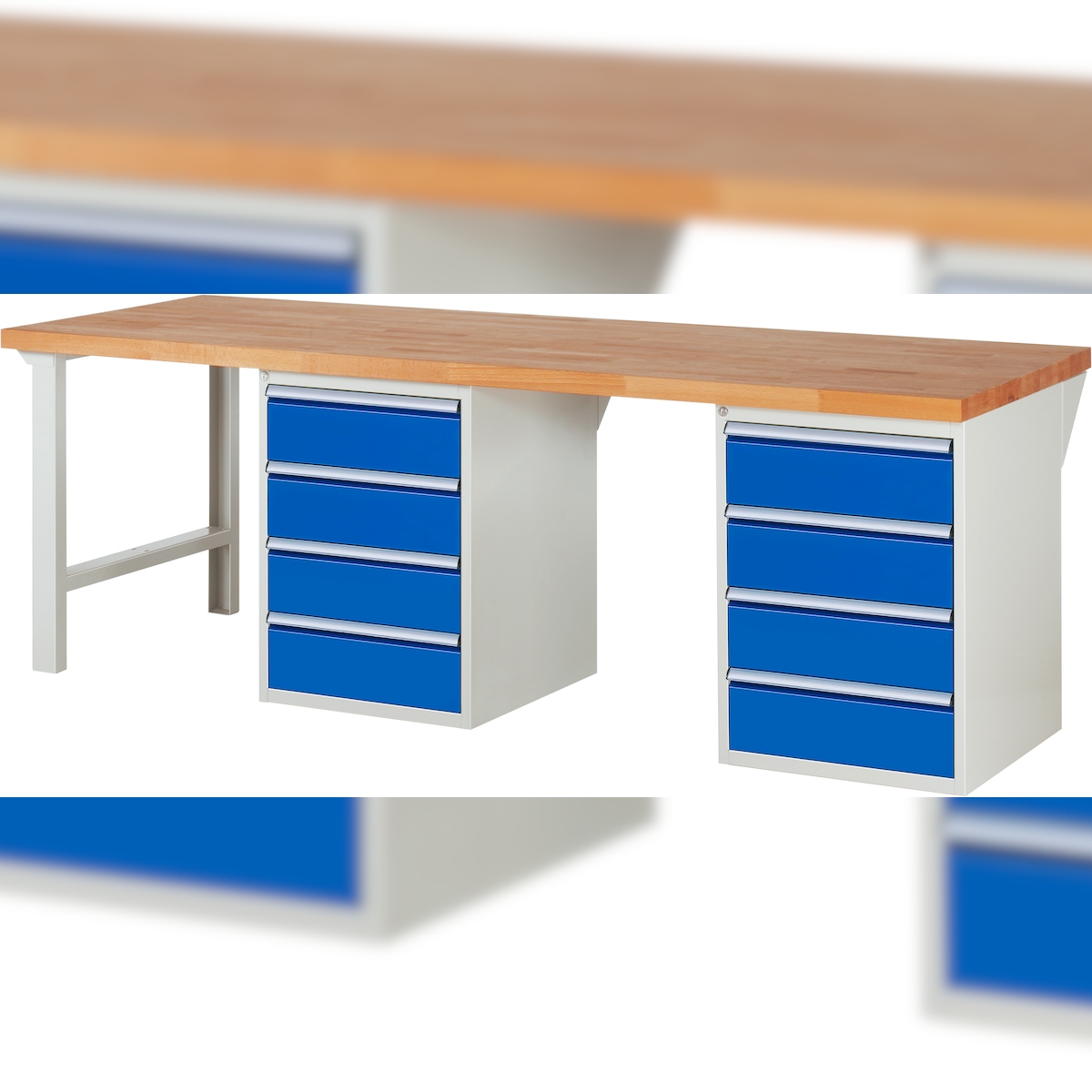PROREGAL Werkbank Serie 7000 - Modell 7510 | HxBxT 84x300x90cm | 8x Schublade + 1x Schrank inkl. SchPROREGALbstock | Schubladenmaße 8x180mm