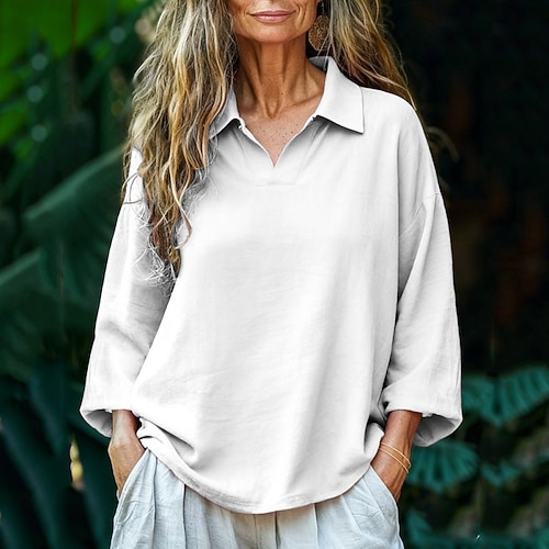 camicia da donna camicetta misto cotone tinta unita vintage elegante moderna manica lunga colletto camicia normale top quotidiano festa uscita bianco rosa azzurro verde kaki primavera autunno