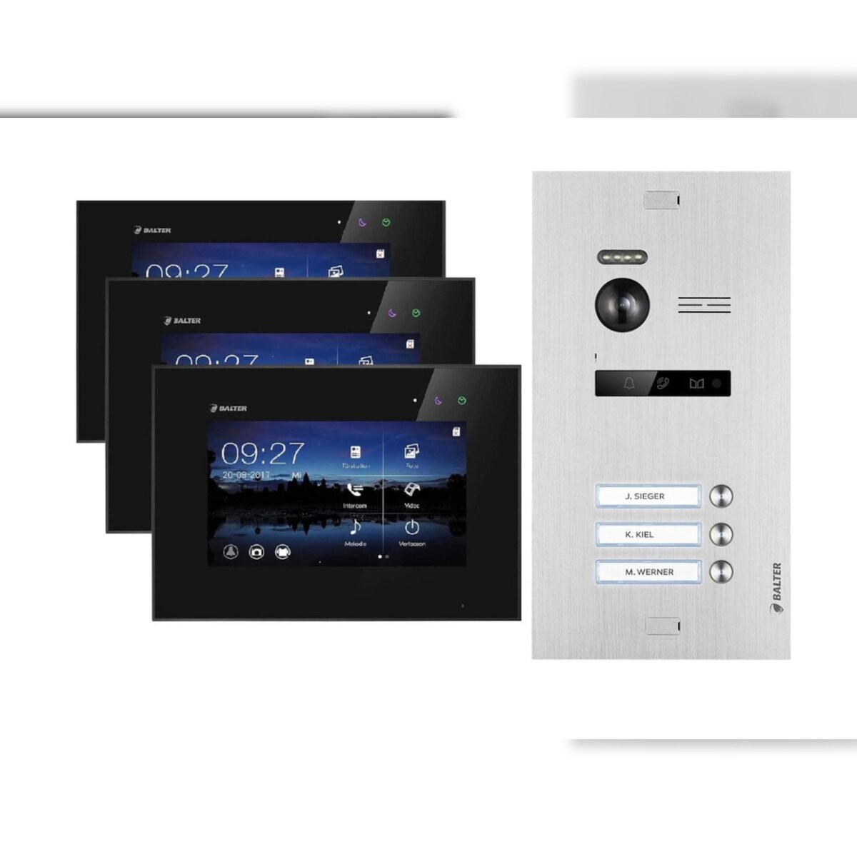 Balter EVO Video-Türsprechanlage für Dreifamilienhaus mit 3x 7 Zoll Monitor Silber Schwarz