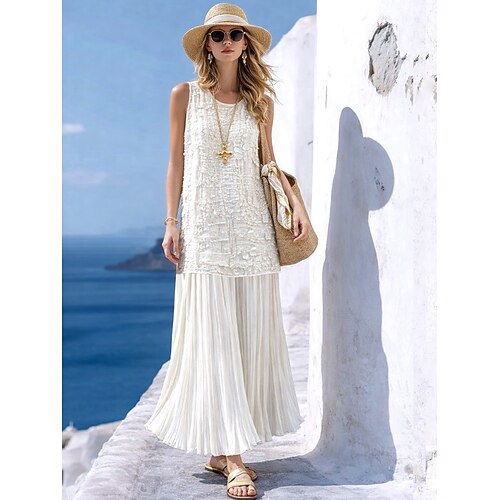 Per donna Set di gonne Bolero Top Senza Maniche Girocollo Tinta unica Frangia con nappe Moda Streetwear Casuale Quotidiano All'aperto Bianco Estate Vestibilità regolare