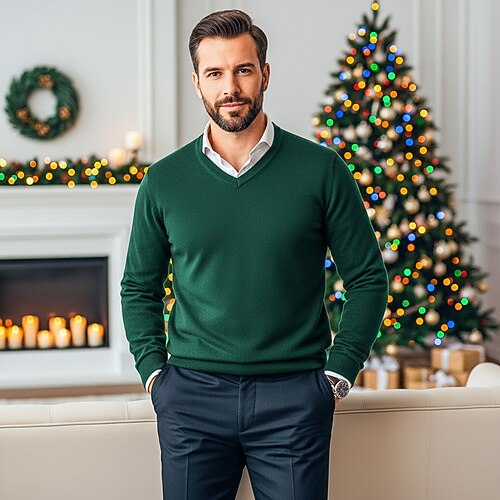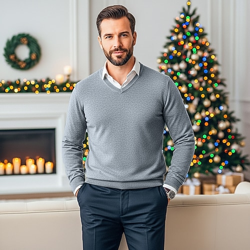 Per uomo Felpa Maglione di lana Maglione A coste Maglia Corto Lavorato a maglia Tinta unica A V Tenere al caldo Contemporaneo moderno Ufficio Da tutti i giorni Abbigliamento Autunno inverno Cammello