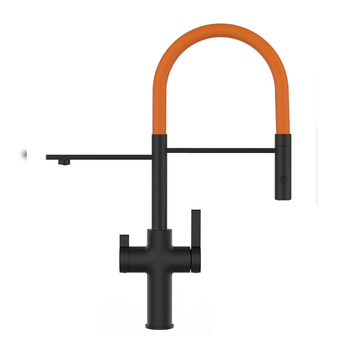 Vizio 3 Wege Wasserhahn Küchenarmatur Spültischmischer FC, Schwarz Matt, mit 360° schwenkbarem Orange Auslauf und abnehmbare 2 strahl Handbrause