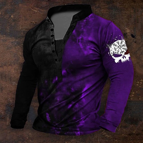 Per uomo Grafico Vichingo Maglia Henley Manica Lunga Stampa 3D Quotidiano Retrò Vintage Casual Ferie Uscire Festival Primavera Autunno Blu Rosso Viola Verde Henley Maglietta Henley