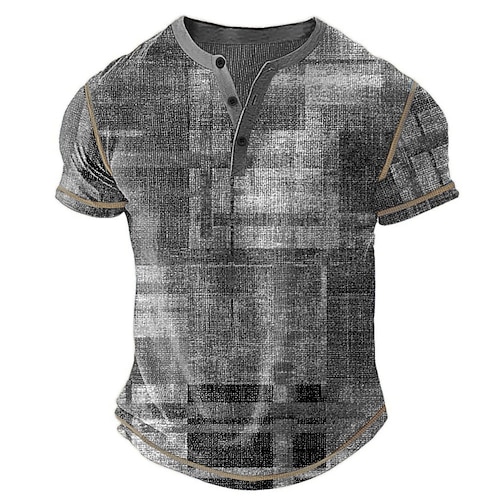 Per uomo Grafico Geometrico Maglia Henley Maglietta a nido d'ape Manica Corta Quotidiano Retrò Vintage Classico Sport all'Aperto Casuale Ferie Primavera Estate Tutte le stagioni Marrone Scuro