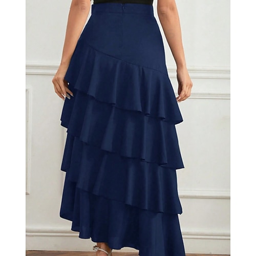 Per donna Elegante Moda Maxi Vita media Gonne Semplice Arricciato Inelastico Quotidiano Streetwear Vinaccia blu navy Nero Verde Estate Poliestere