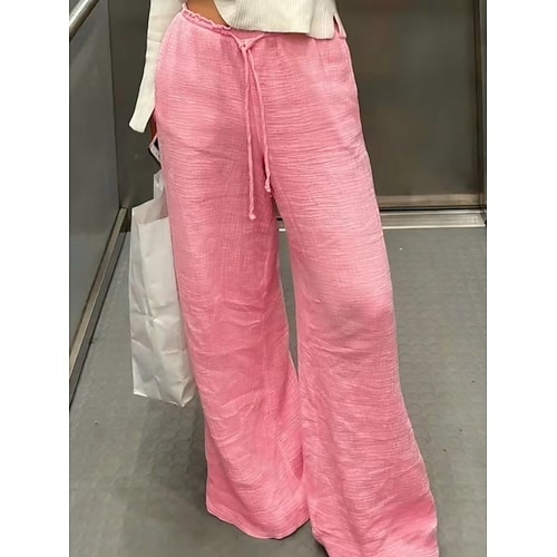 Per donna Finto cotone e lino Pantaloni Estivi Pantaloni da Spiaggia Vacanza Moda Casual Lunghezza intera Vita media Semplice Coulisse Patchwork Comodità Inelastico Quotidiano All'aperto Ferie Bianco