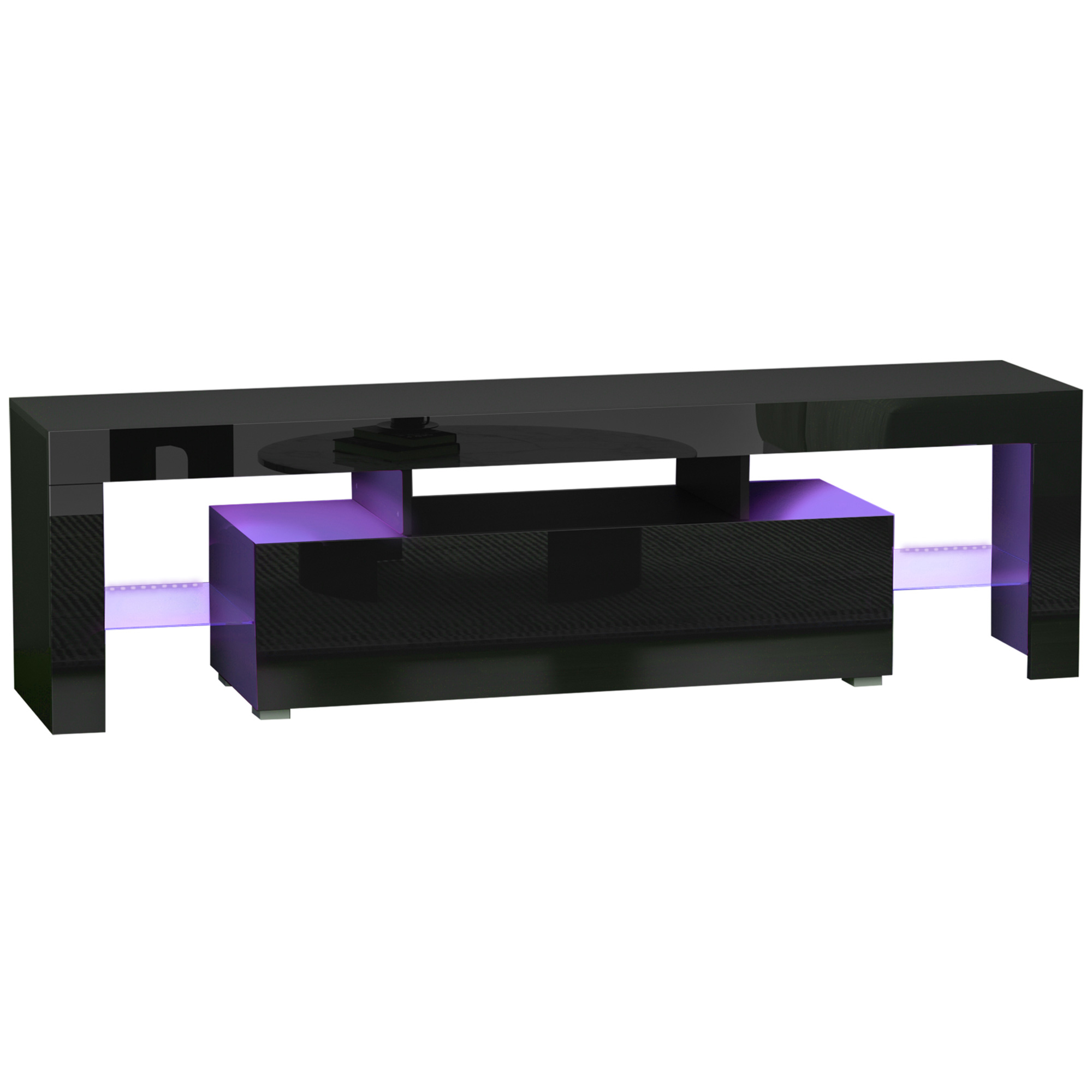 White TV Cabinet with High Gloss and Color Changing LED Lights, Media Unit with Storage for Living Room, Bedroom, 180x35x30 cm, White | Aosom.UK