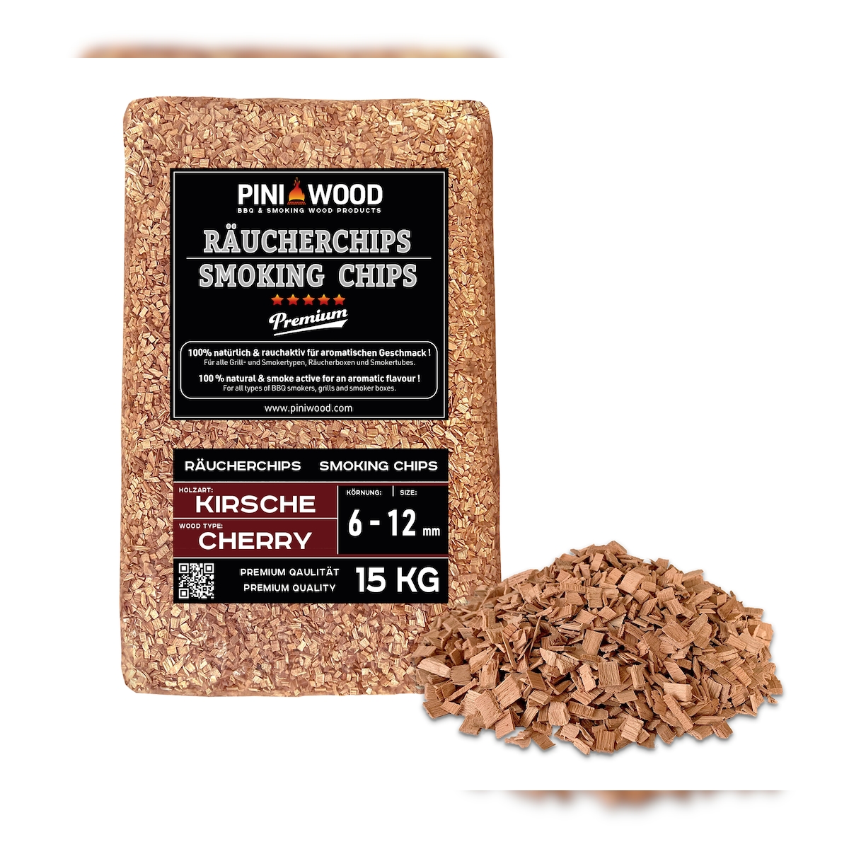 PINI 15 Kg Räucherchips Kirsche 6-12 mm Smoking Chips Räucherspäne