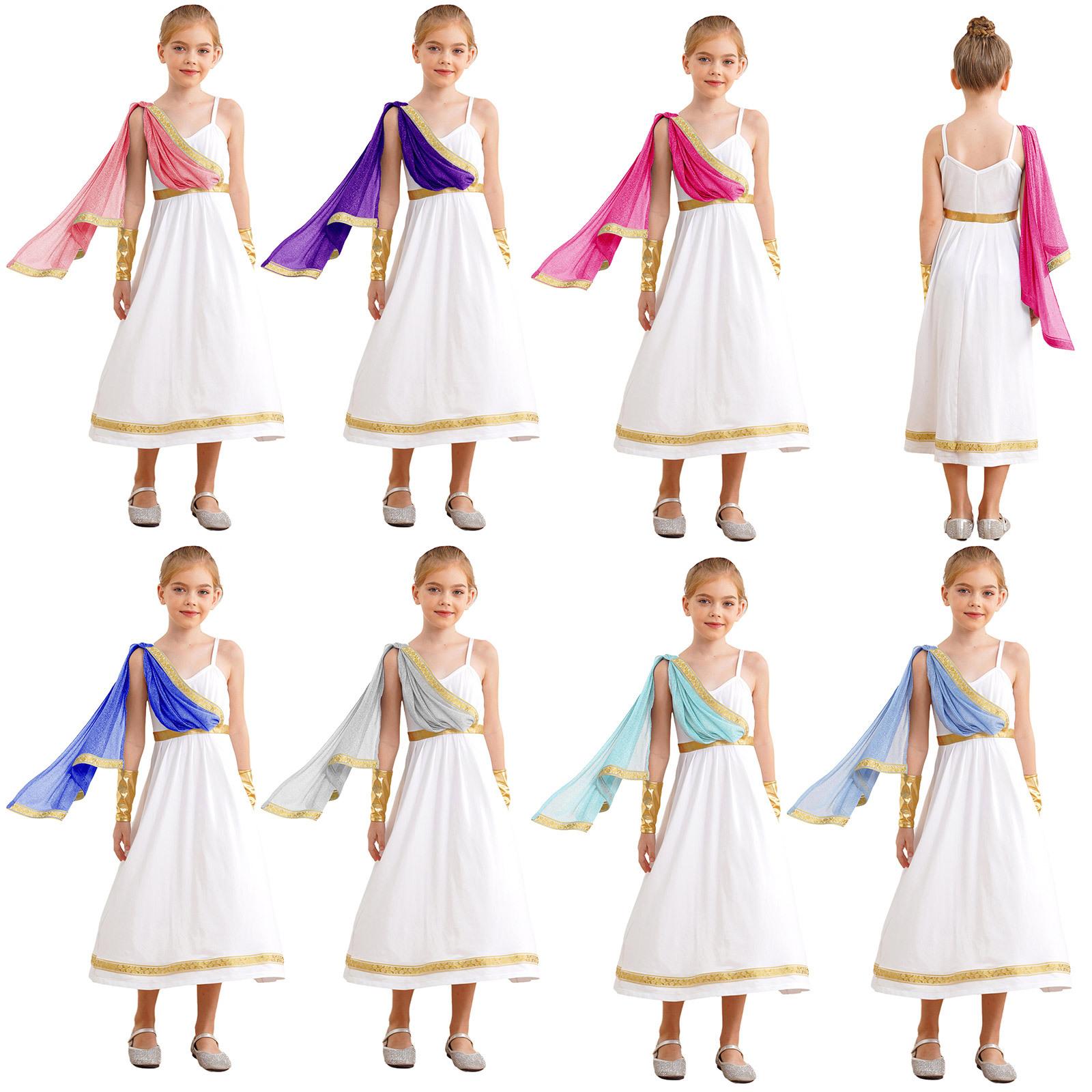 Kids Girls Ancient Greek God Toga Grecian Beauty Gown Dress Athena Princess Cosplay Fancy Dress Up Costume cm lavender