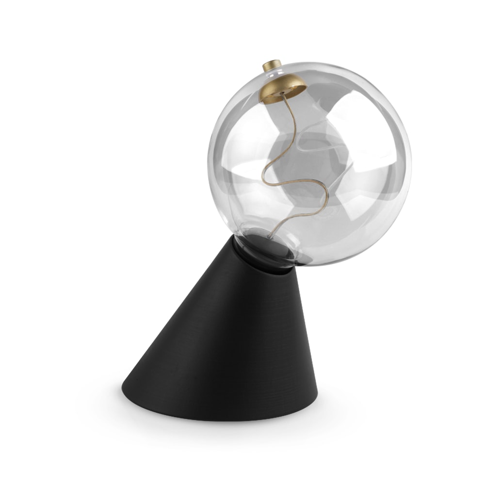 Lampada da tavolo con lampadina innovativa di colore nero e oro