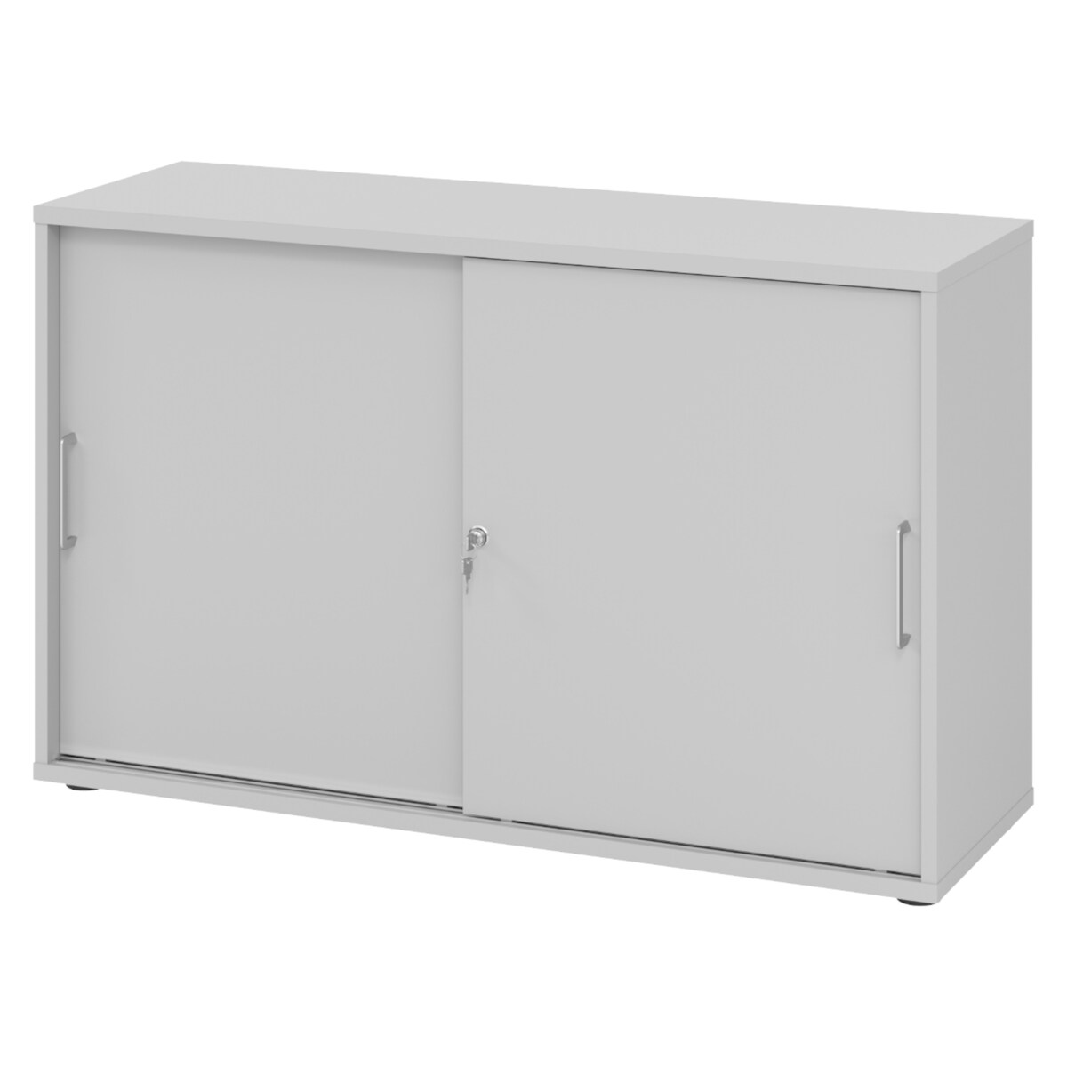 bümö Schiebetürenschrank 2OH - Aktenschrank abschließbar, Sideboard Schrank mit Schiebetüren in grau, Bügelgriff - Büroschrank aus Holz mit
