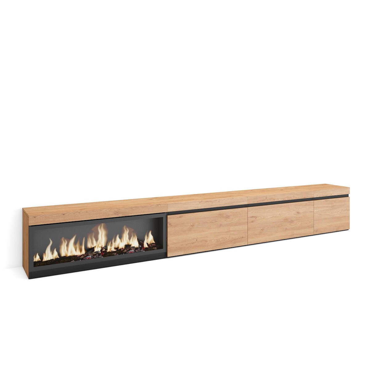 SKRAUT HOME Wohnzimmer-TV-Schrank, Viel Stauraum, 317x35x45cm, XXL-Elektrokamin, Modern, Eiche _ 511_9