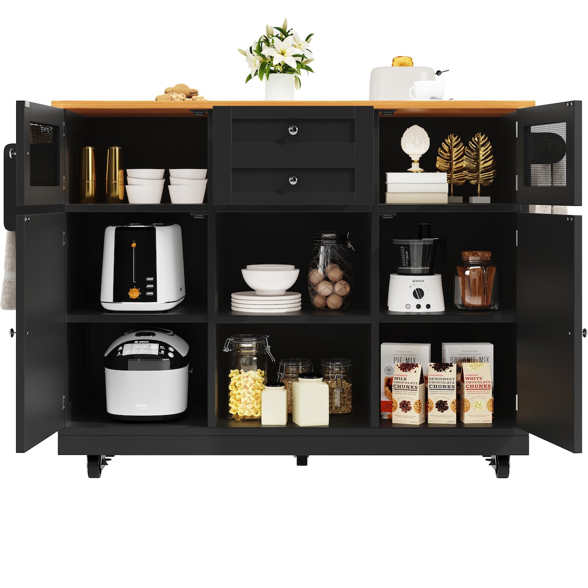Kommode INOSIGN "Naia, Aufbewahrung, 6 Schubladen, grifflose Front, viel Stauraum", grau (betonfarben, weiß, hochglanz), B:153,8cm H:70,1cm T:50cm, Holzwerkstoff, Sideboards, Kommode, Modern, skandinavisches Design, in mehrere Farben, Metallgleiter