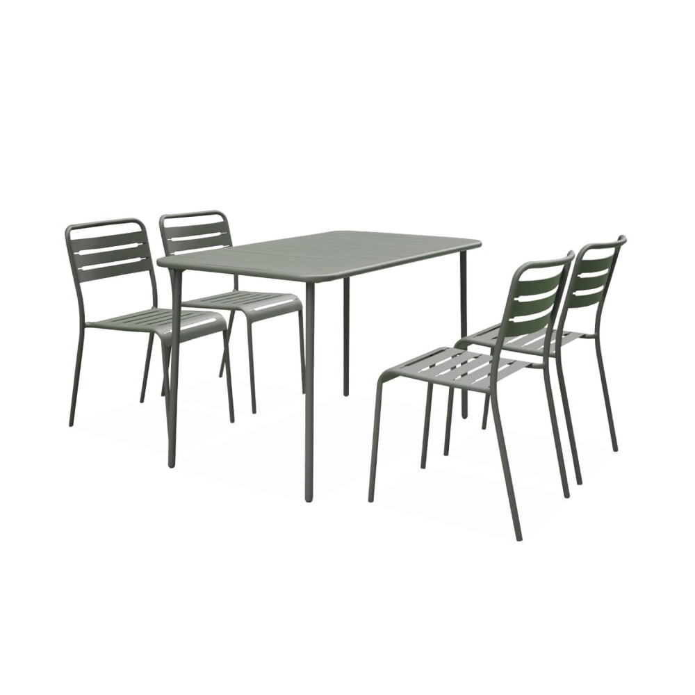 Set tavolo da giardino in acciaio con 4 sedie, 120cm, verde kaki
