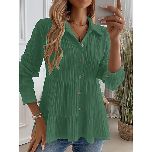 Per donna Abbottonare Maglietta Finto cotone e lino Semplice Moda Moderno Casual Manica Lunga Scollo a V Top Regolari Quotidiano Weekend Patchwork Bottoni Verde salvia Giallo Bianco sporco Grigio