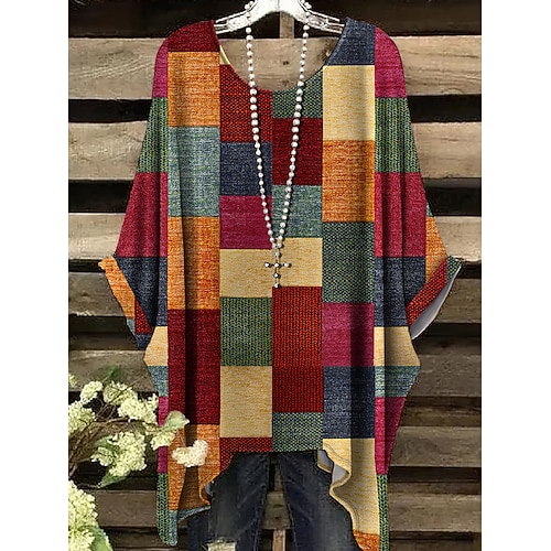 Per donna Blusa Grafico Geometrico Vintage Elegante Casual Mezza Manica Manica a pipistrello Girocollo Top lunghi Quotidiano Abbigliamento mare Abbigliamento da vacanza Rosso Arancione Estate
