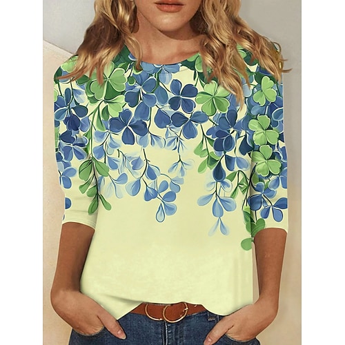 T-shirt da donna per il giorno di San Patrizio Graphic Shamrock Moda Stilosa Classica a maniche lunghe Collo tondo Tops normali Stampa Daily Fine settimana Blu Nero Verde Estate Primavera Autunno