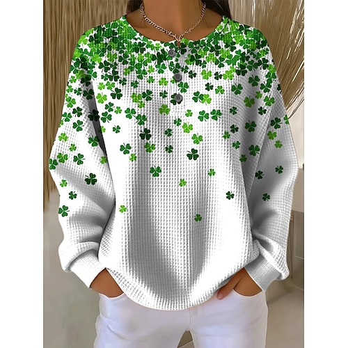 T-shirt da donna di St. Patrick per il giorno di San Patrizio trifoglio elegante classico casual maniche lunghe scollo rotondo top regolari stampa quotidiana blu nero bianco khaki primavera autunno