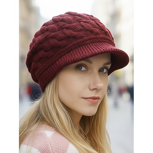 Cappello da donna in maglia acrilica con fodera in pile, vari colori, comodo ed elegante per le attività natalizie e invernali