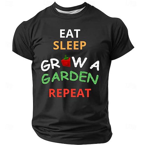 Maglietta da giardinaggio da uomo 'Mangia dormi fai crescere un giardino ripeti' maglietta grafica - regalo per hobby e stile di vita
