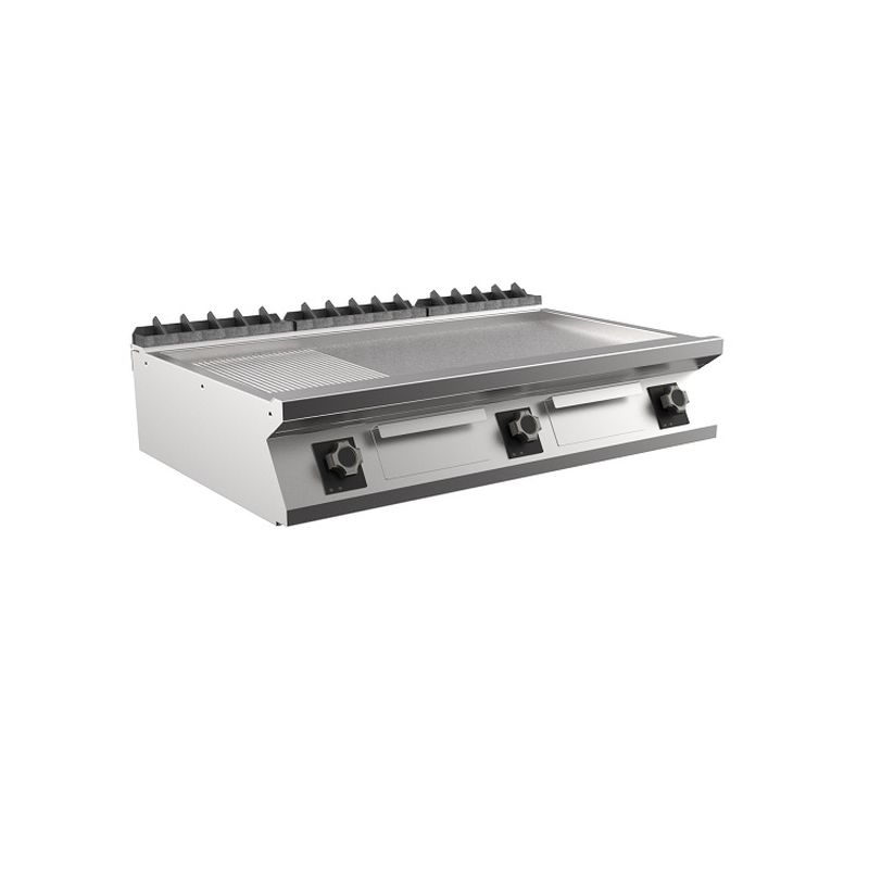 Mareno M1-900 elektrische Griddleplatte mit 2/3 glatter-1/3 gerippter mattverchromter Platte, 120cm