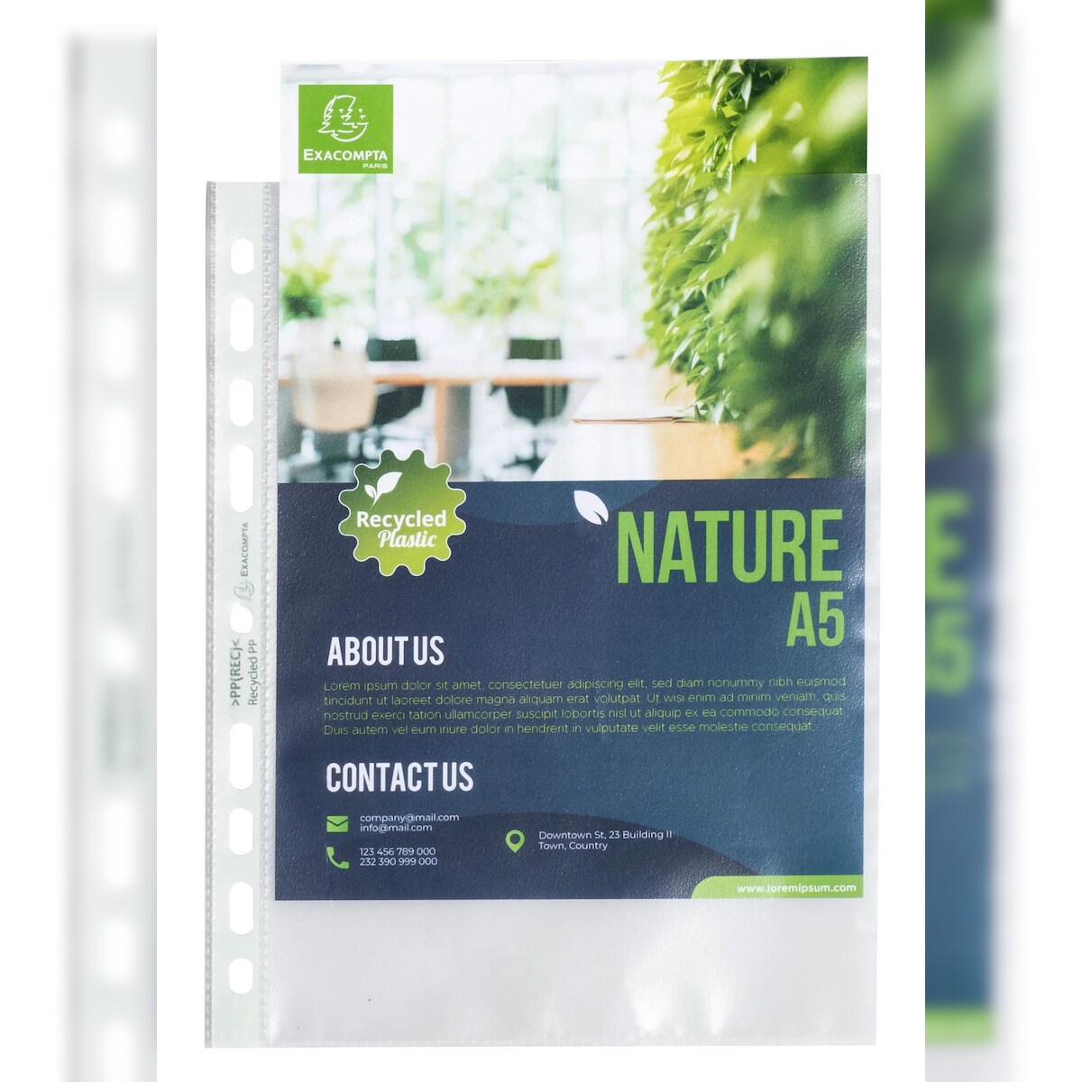 Exacompta 51100E 10x Beutel mit 50 Prospekthüllen, genarbt, Recycling-PP 60, für A5, Forever - Transluzent