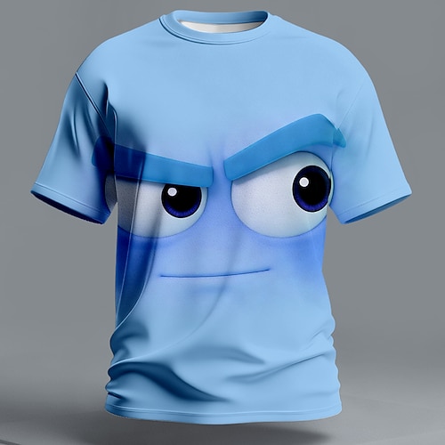 Maglietta divertente con grafica rosa e faccina arrabbiata per uomo, stampa 3D con grandi occhi ed espressione scontrosa, maglietta casual da uomo con design meme umoristico, abbigliamento casual a
