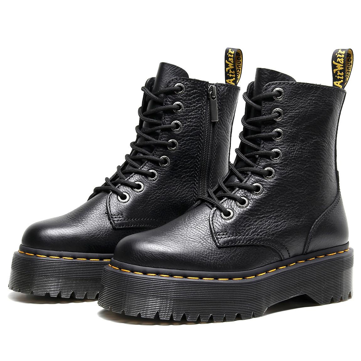 Tykkbunnet hull Martin-støvler dame sideglidelås lychee-mønster korte støvler ekte skinn stor størrelse høye skinnstøvler cm Svart