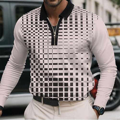 Per uomo Motivo Geometrico Polo Manica Lunga Collo ripiegato Moderno Casual Sport Outdoor Athleisure Casual Quotidiano Cerniera Stampa 3D Primavera Autunno Inverno Marrone scuro Marrone chiaro