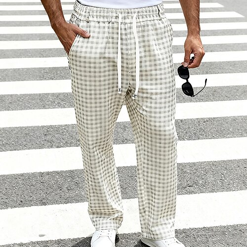 Per uomo Pantaloni Pantaloni casual Coulisse Tasca Elastico in vita Plaid Comodità Morbido All'aperto Quotidiano Ferie Moda Stile Classico Cáqui Escuro CachiA Micro-elastico