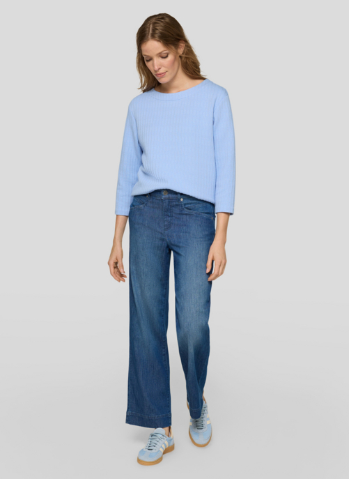3/4-Arm-Shirt RABE, Damen, Gr. 42, blau (hellblau), Rippware, Obermaterial: 68% Viskose, 28% Polyester, 4% Elasthan, Strukturmuster, regular fit taillenbedeckt, Rundhals, Shirts 3/4-Arm-Shirt, mit Struktur Muster