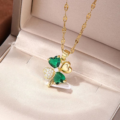 1 pezzo Collana con pendente Collana For Per donna Zircone cubico Diaspro Quotidiano Streetwear Regalo Acciaio al titanio Patchwork Giorno di San Patrizio