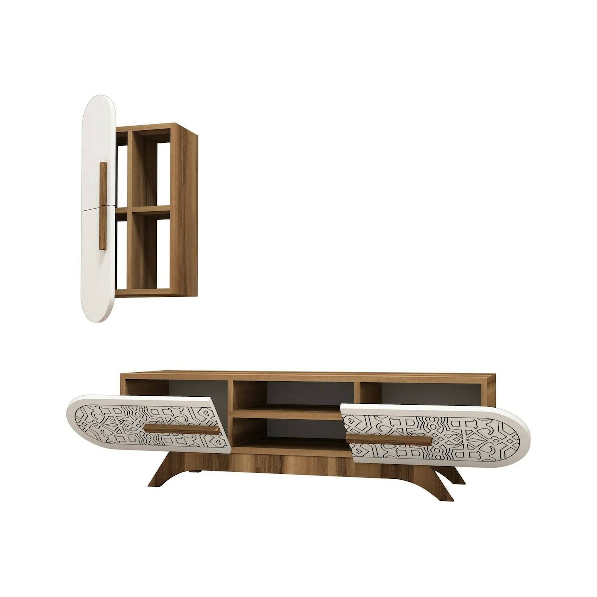 Dmora Wohnzimmermöbel Dpascucc, Modulares Wohnzimmerset, Mehrzweck-Wohnzimmermöbel, Moderner TV-Schrank, 145x35h37 cm, Walnuss und Weiß