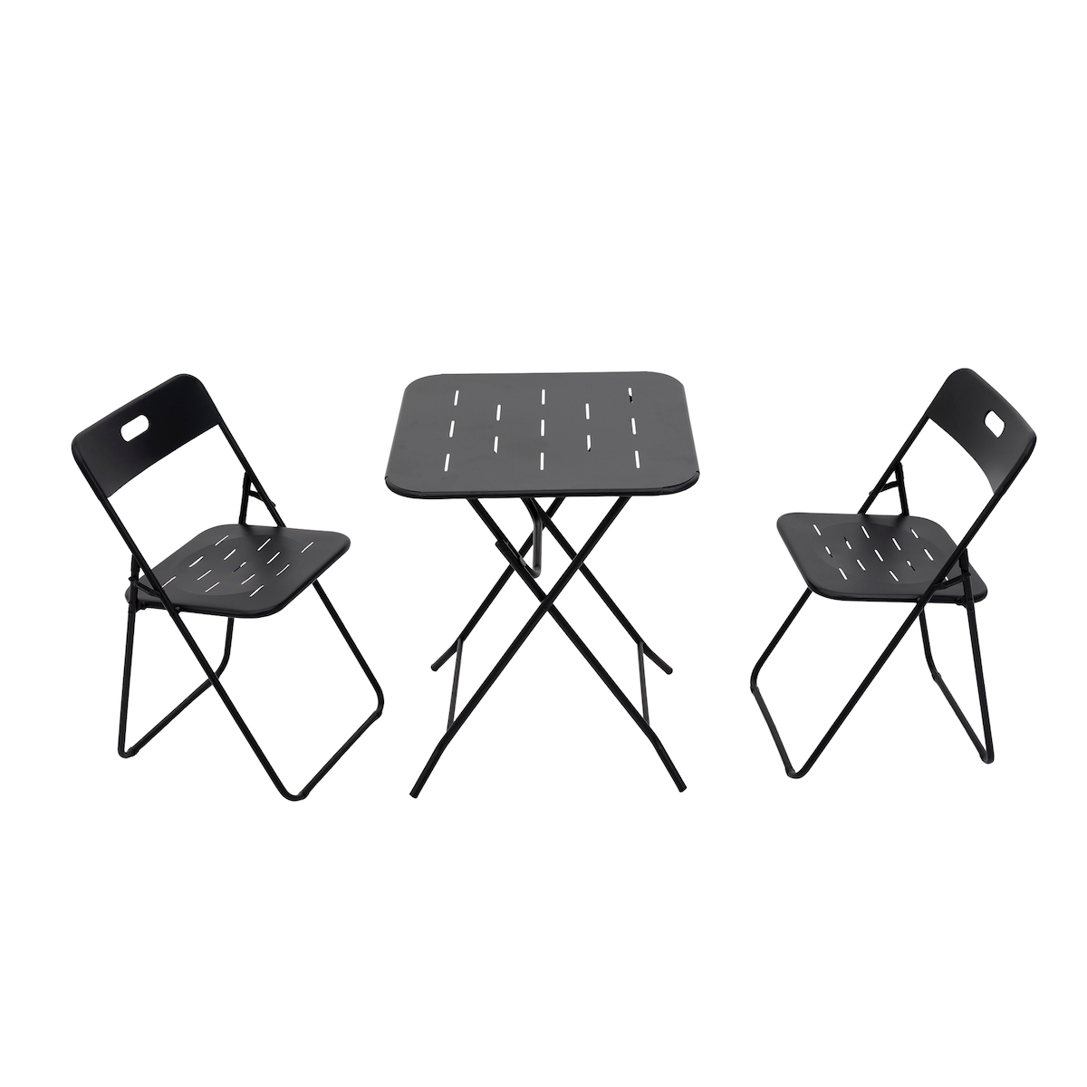 Merax Bistro Set klappbar 3-teilig Outdoor Stahl wetterfest 2 Stühle + Tisch Balkonmöbel Terrasse Gastronomie, Schwarz