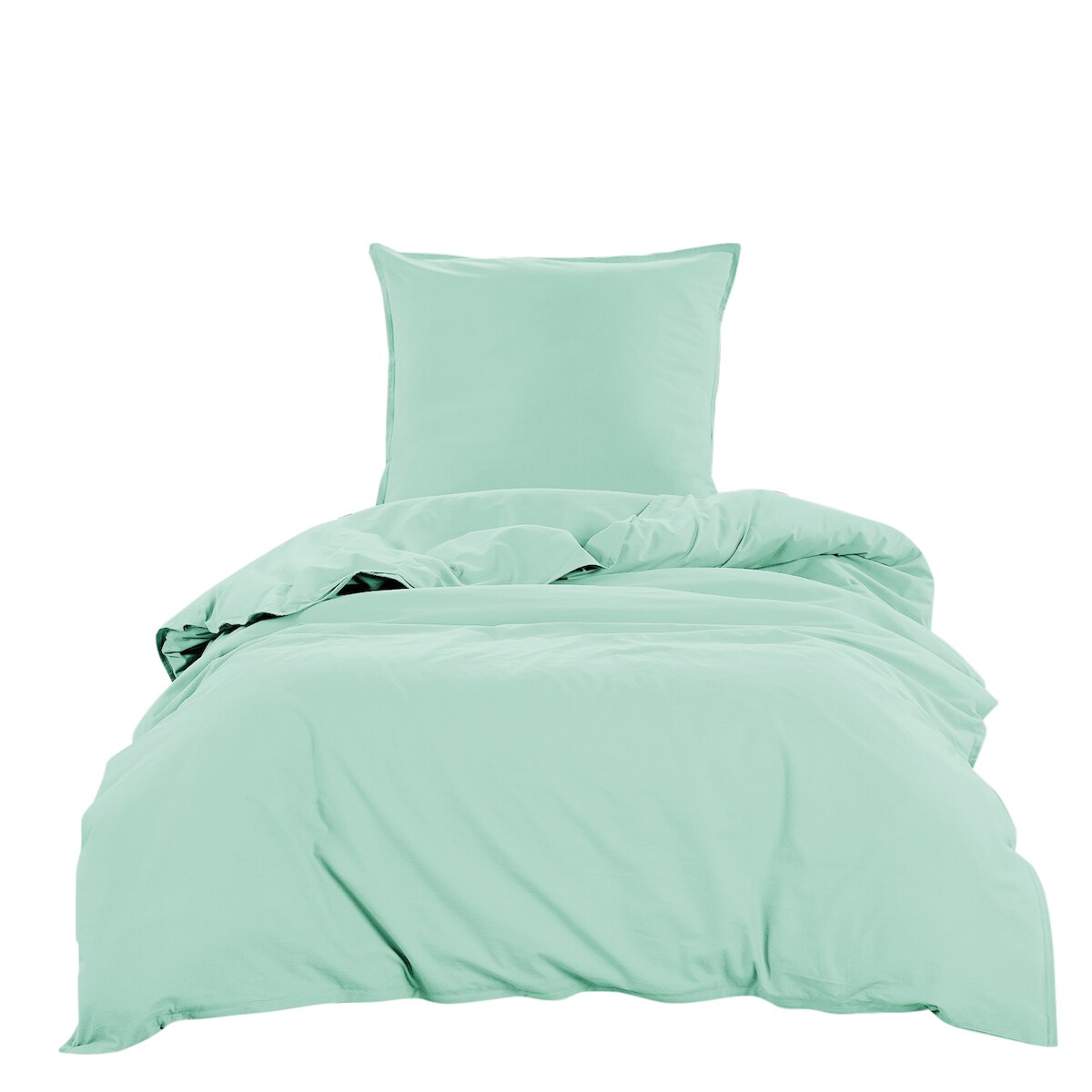 wometo Bettwäsche Renforce Stone-Washed 155x220 & 80x80 100% Baumwolle - mintgrün OEKO-TEX modern Used-Look Leinen-Optik