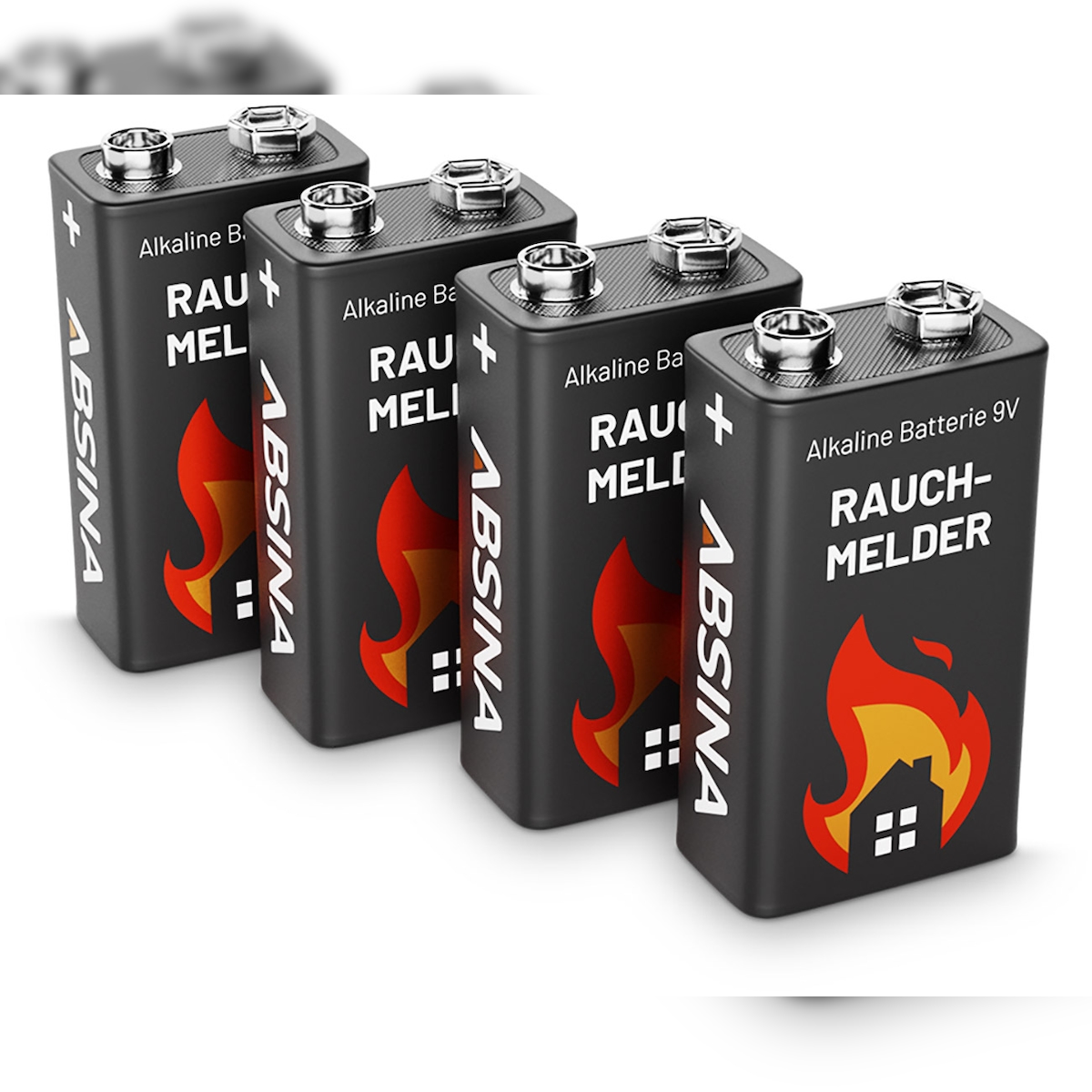 4er Pack Alkaline 9V 6LR61 Block-Batterien ideal für Rauchmelder, Rauchwarnmelder, Messgeräte, Spielzeuge und Weitere