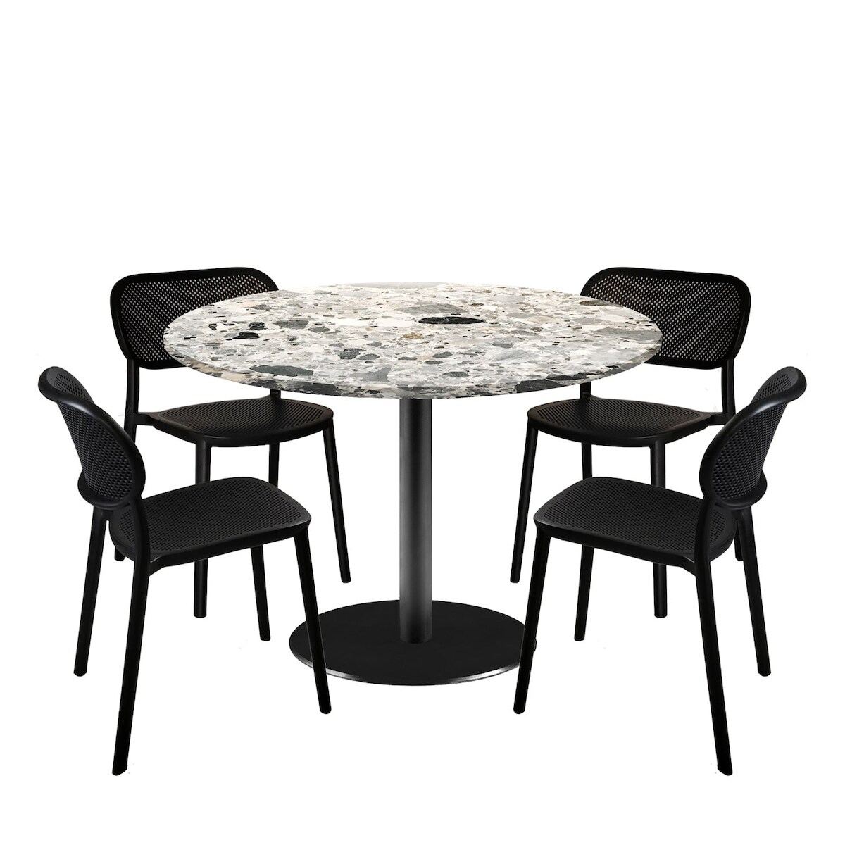 Restootab Esstisch-Set Rome Ø120cm und 4 Stühle - Modell Terrazzo Cepp