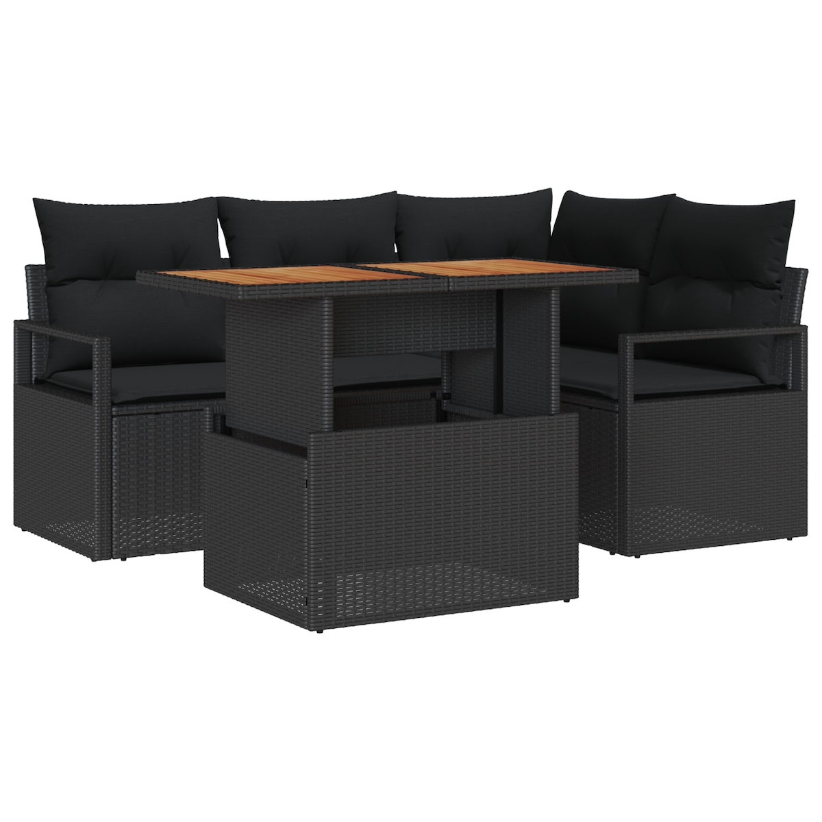 vidaXL 5-teiliges Garten-Sofa-Set mit Kissen, schwarz, Poly Rattan und Akazie