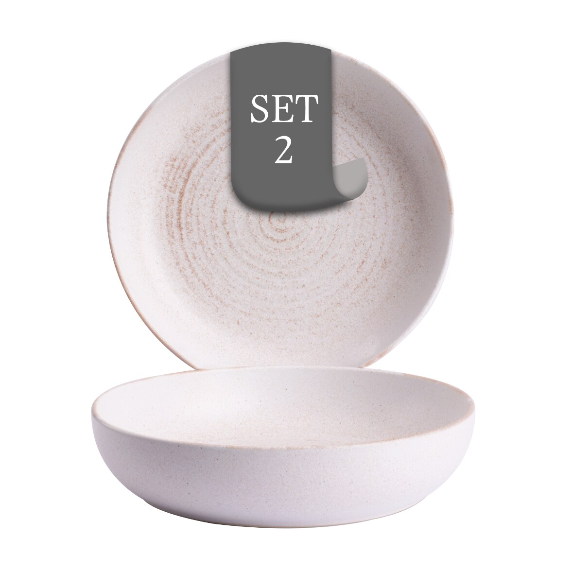 Costa Nova Vermont tiefe Teller - 2er-Set, Steingut, 22 cm, Elfenbein Weiß, Seidenglanz, Spiralmuster, handwerklich, spülmaschinenfest