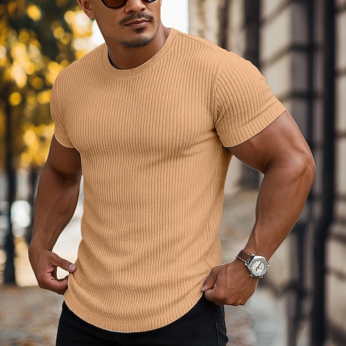 Per uomo Maglietta Waffle Maglietta Felpa con Cappuccio Manica Corta Maniche Corte Scollo a V Estate Tutte le stagioni Tinta unica Testurizzato Moda Designer Sportivo Base Streetwear Casuale Uscire
