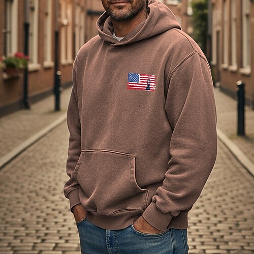Per uomo Felpa con cappuccio Felpa con cappuccio invecchiata Nero Giallo Rosa Rosso Blu Con Cappuccio Bandiera Americana Coulisse Tasca Tasca Frontale Sport Outdoor Quotidiano Ferie Cotone