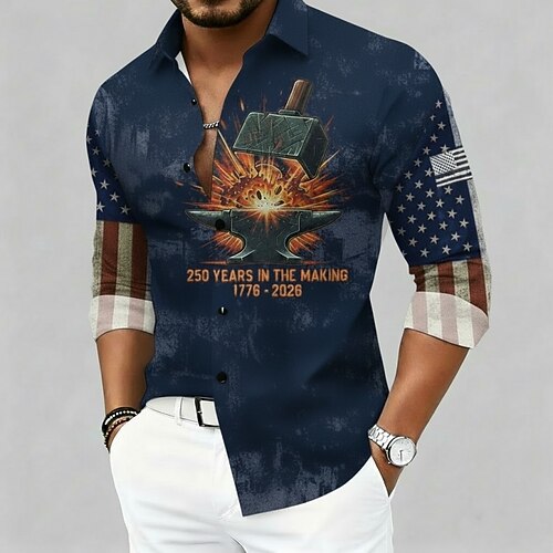 Per uomo Bandiera Americana Patriottico Camicia da lavoro Camicia Western Camicia cargo Manica Lunga Pantaloni Tattici Vintage Retrò Sport all'Aperto Abbigliamento da lavoro Primavera Autunno Collo