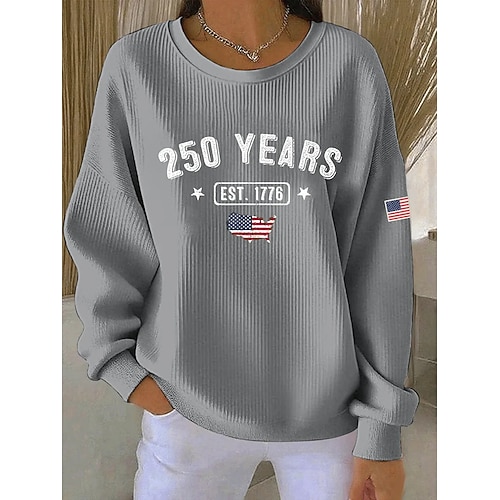 Maglietta patriottica per il Giorno dell'Indipendenza Donna 250° Anniversario Americano Maglietta Grafica Bandiera USA Moda Elegante Classico Manica Lunga Girocollo Stampa Quotidiana Weekend Nero