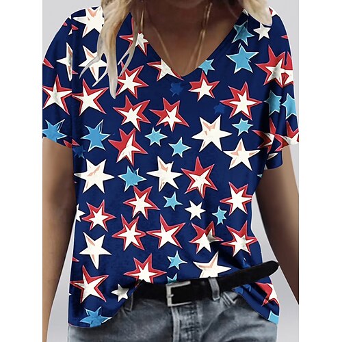Giorno dell'Indipendenza Americana Per donna Maglietta Stampato Grafico Bandiera Elegante Classico Casual Manica Corta Scollo a V Top Regolari Quotidiano Blu Rosso Viola Verde Estate Primavera