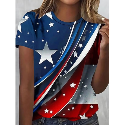 Giorno dell'Indipendenza Americana Per donna Maglietta Stampato Grafico Bandiera Vintage Moda Elegante Manica Corta Girocollo Top Regolari Quotidiano Weekend Blu Rosa Rosso Estate Primavera
