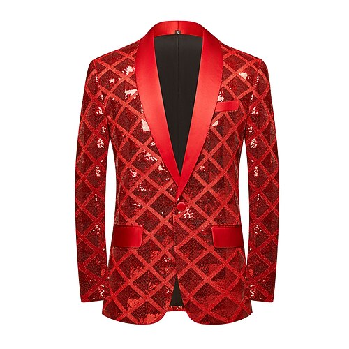 Per uomo Giacca blazer Collo a scialle Festa A quadri Blazer Nero Argento Rosa Vestibilità aderente Monopetto Un Bottone